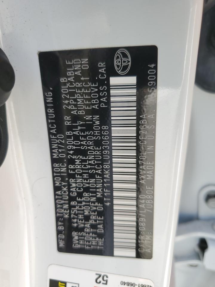 2020 TOYOTA CAMRY - 4T1F11AK8LU930668, колір - Білий, 2.5, Бензин, із США