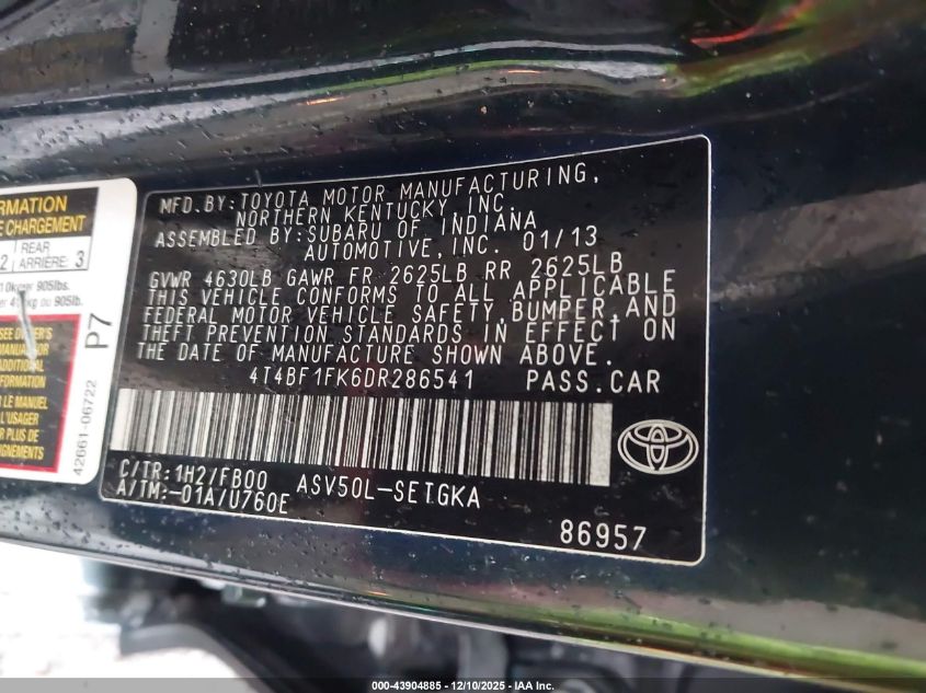 2013 TOYOTA CAMRY - 4T4BF1FK6DR286541, колір - Синій, 2.5, Бензин, Передній привід із США