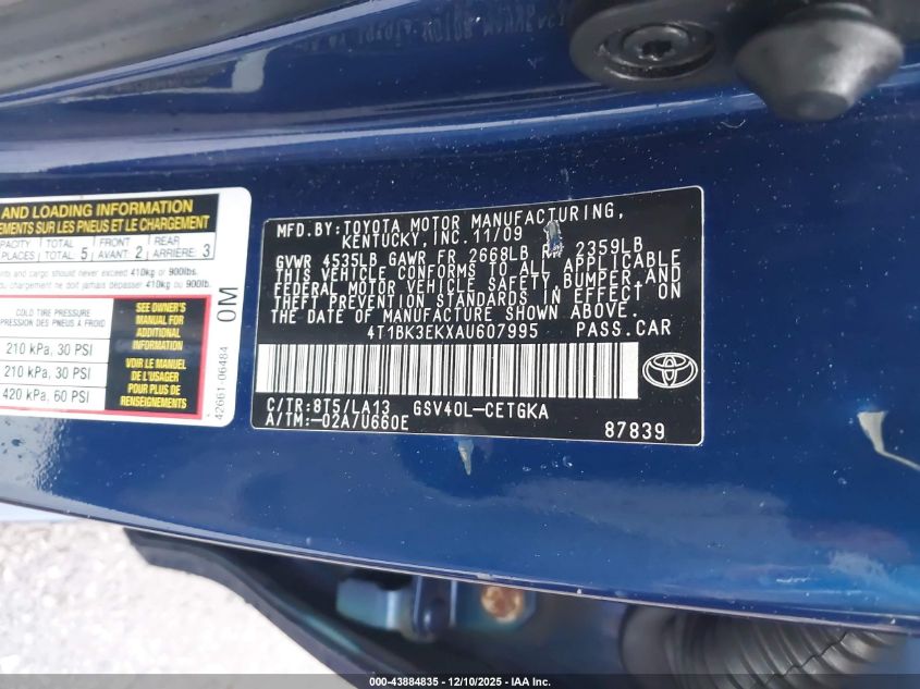 2010 TOYOTA CAMRY - 4T1BK3EKXAU607995, колір - Синій, 3.5, Бензин, Передній привід із США