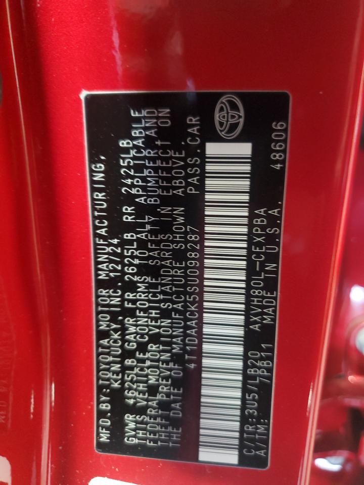 2025 TOYOTA CAMRY - 4T1DAACK5SU098287, колір - Червоний, 2.5, Гібрид, із США