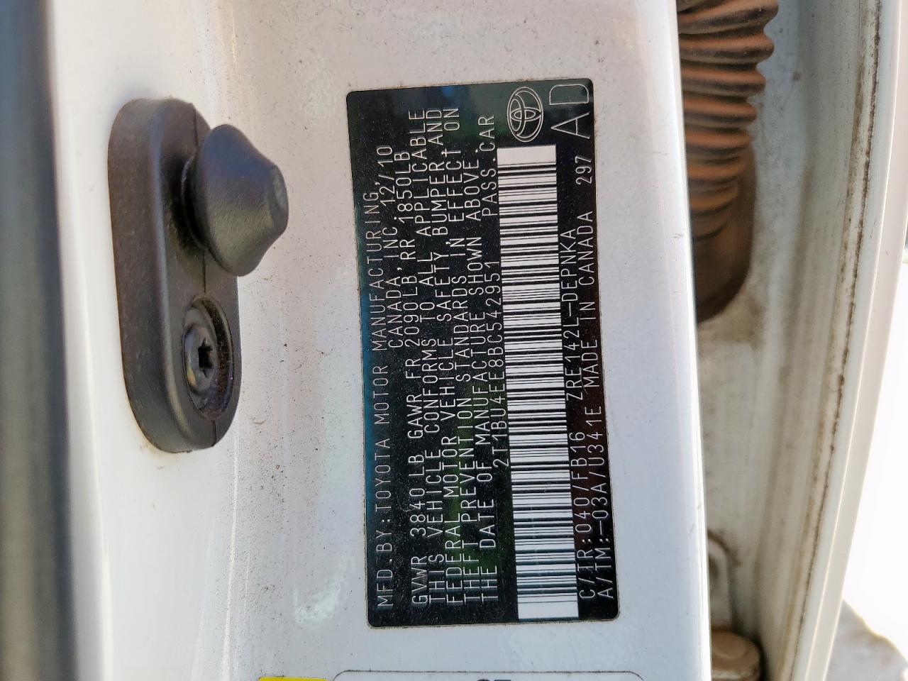 Колір БілийЦиліндри 4VIN 2T1BU4EE8BC542951Стан Заводиться та їде (перевірено)Ушкодження Задня
