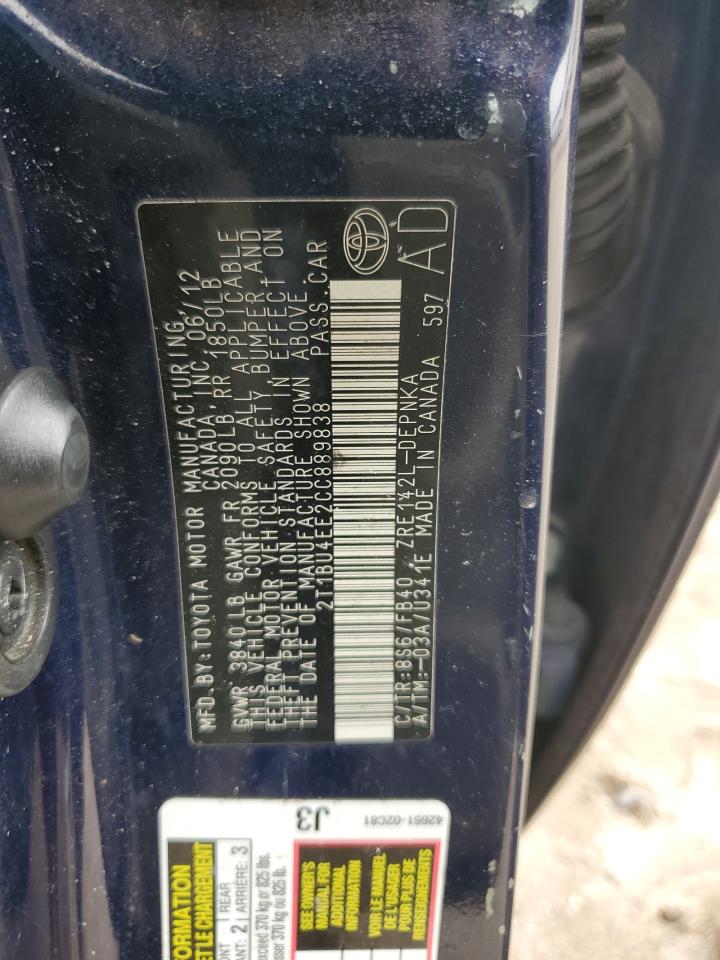 2012 TOYOTA COROLLA - 2T1BU4EE2CC889838, колір - Синій, 1.8, Бензин, із США