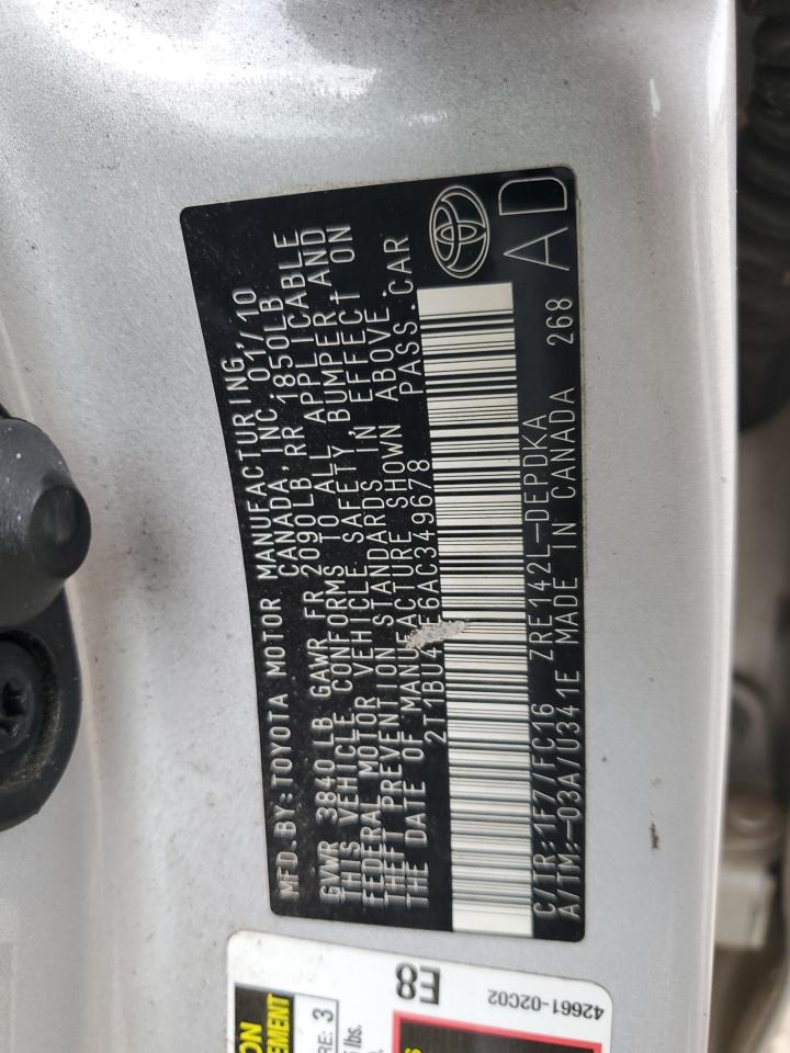 2010 TOYOTA COROLLA - 2T1BU4EE6AC349678, колір - Срібний, 1.8, Бензин, із США