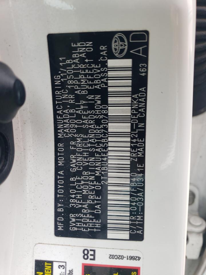 2011 TOYOTA COROLLA - 2T1BU4EE5BC730780, колір - Білий, 1.8, Бензин, із США