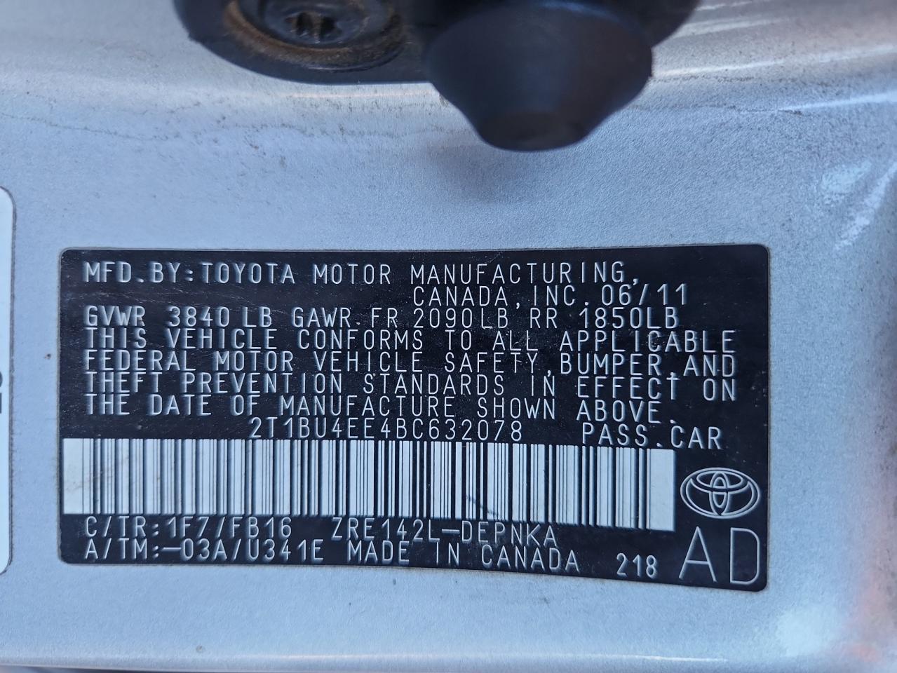 2011 TOYOTA COROLLA - 2T1BU4EE4BC632078, колір - Срібний, 1.8, Бензин, із США