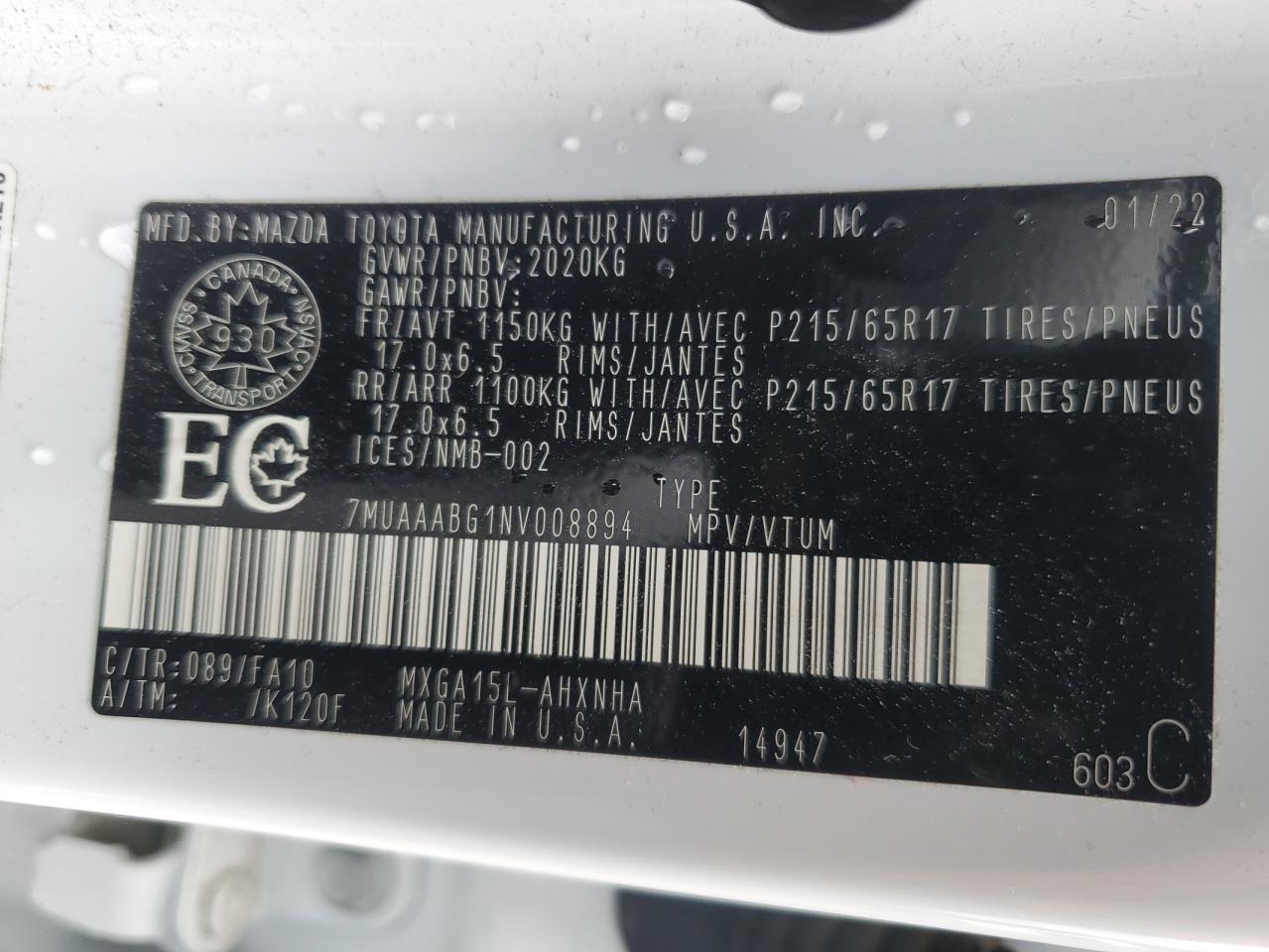 Колір БілийЦиліндри 4Привід Повний привідVIN 7MUAAABG1NV008894Стан Заводиться та їде (перевірено)Ушкодження НизДата аукціона 2025-10-09