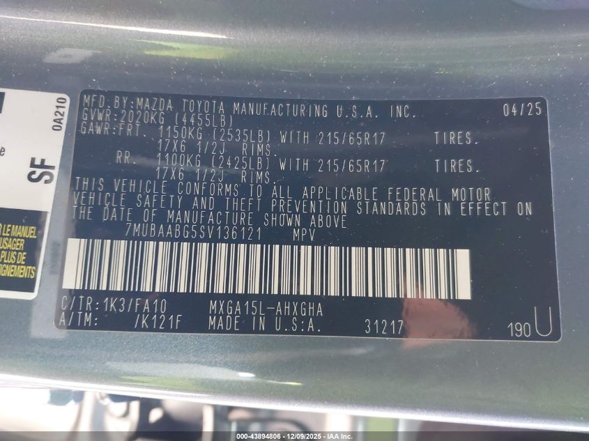 2025 TOYOTA COROLLA CROSS - 7MUBAABG5SV136121, колір - Синій, 2.0, Бензин, Повний привід із США