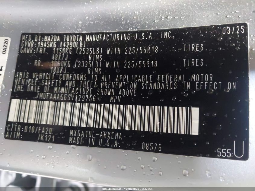2025 TOYOTA COROLLA CROSS - 7MUEAAAG6SV129256, колір - Сірий, 2.0, Бензин, Передній привід із США