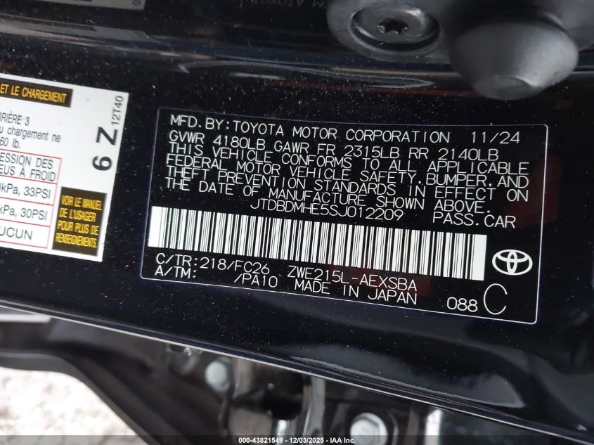 2025 TOYOTA COROLLA LE