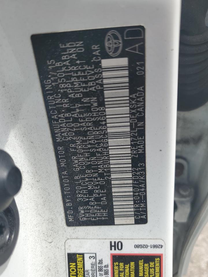 2016 TOYOTA COROLLA - 2T1BURHE6GC564608, колір - Білий, 1.8, Бензин, із США