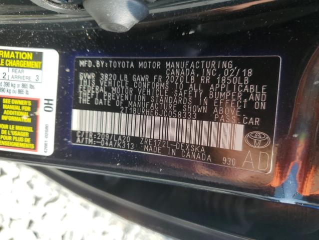 2018 TOYOTA COROLLA - 2T1BURHE6JC058333, колір - Чорний, 1.8, Бензин, із США