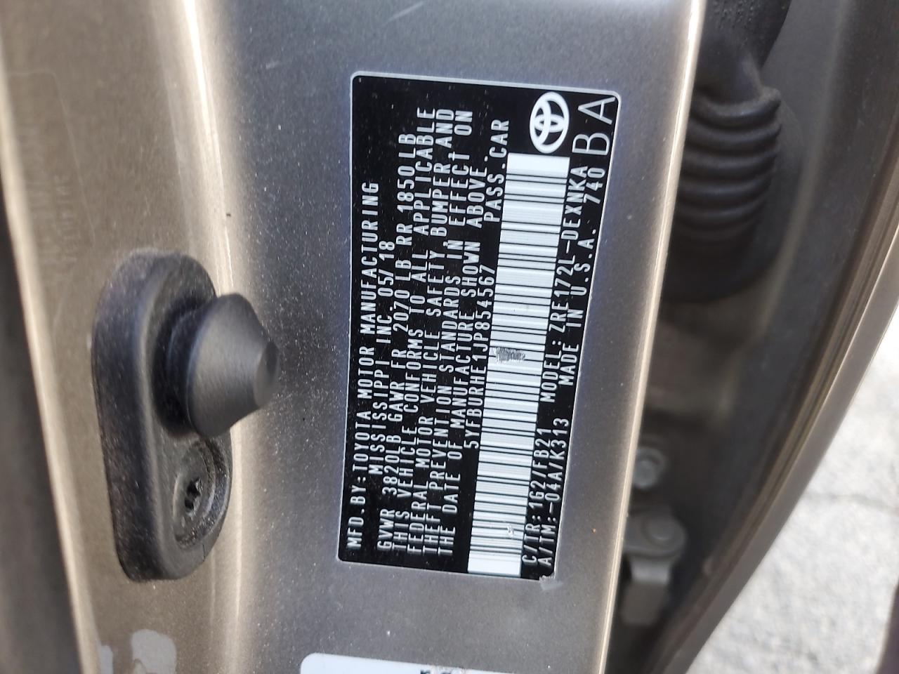2018 TOYOTA COROLLA - 5YFBURHE1JP854567, колір - Сірий, 1.8, Бензин, із США