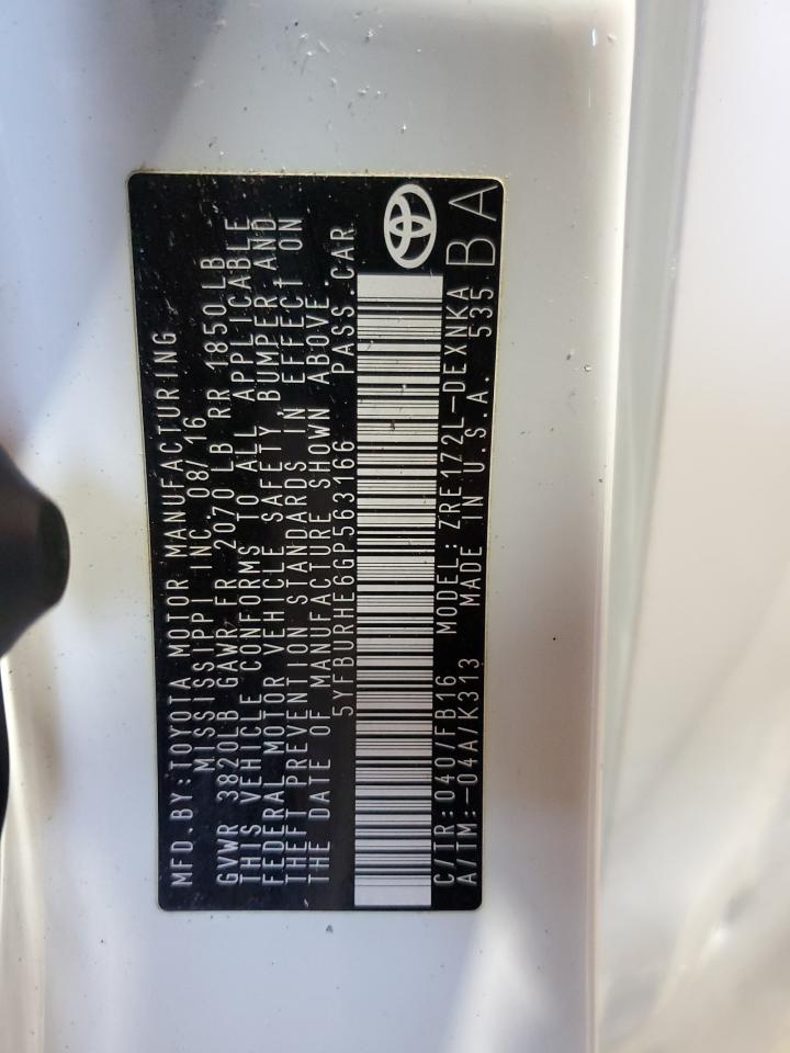 2016 TOYOTA COROLLA - 5YFBURHE6GP563166, колір - Білий, 1.8, Бензин, із США