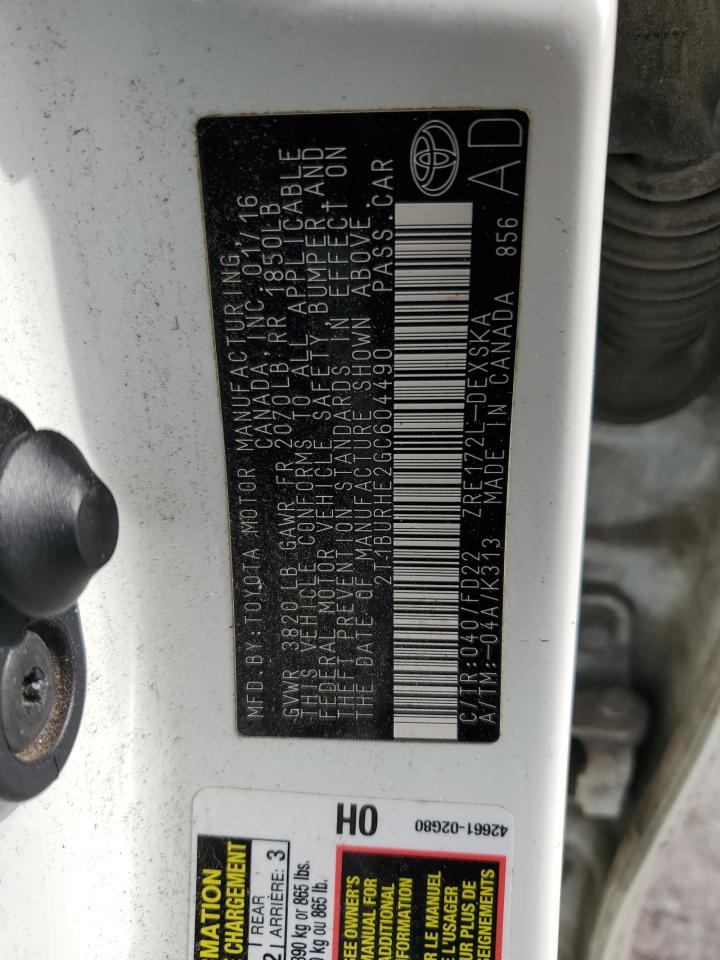 2016 TOYOTA COROLLA - 2T1BURHE2GC604490, колір - Білий, 1.8, Бензин, із США