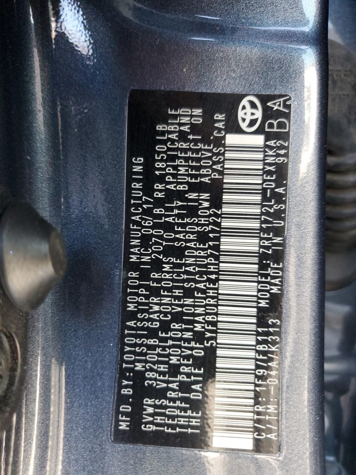 2017 TOYOTA COROLLA - 5YFBURHE4HP711722, колір - Деревне вугілля, 1.8, Бензин, із США