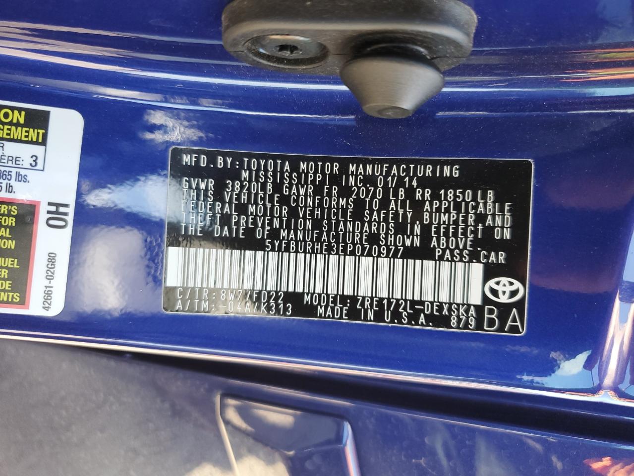 2014 TOYOTA COROLLA - 5YFBURHE3EP070977, колір - Синій, 1.8, Бензин, із США
