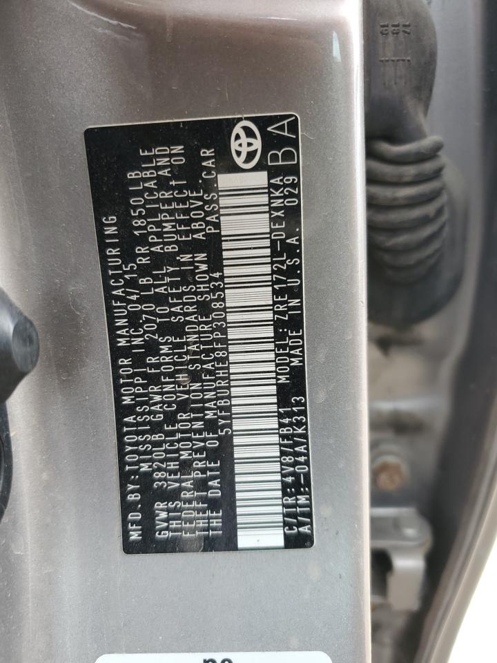 Колір СірийЦиліндри 4VIN 5YFBURHE8FP308534Стан НевідомоУшкодження Передня або задня