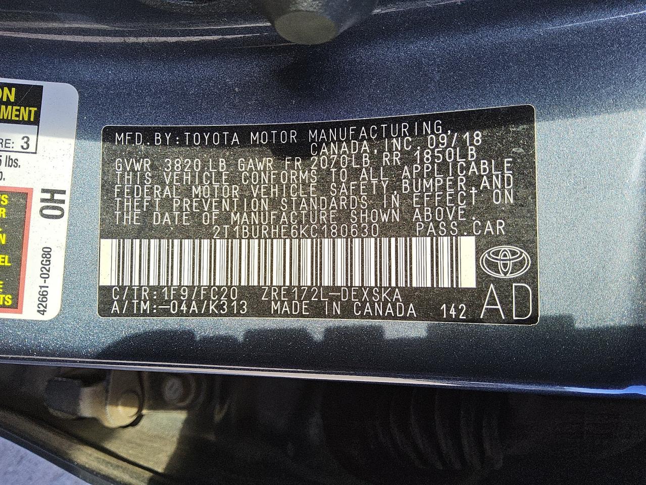 2019 TOYOTA COROLLA - 2T1BURHE6KC180630, колір - Синій, 1.8, Бензин, із США