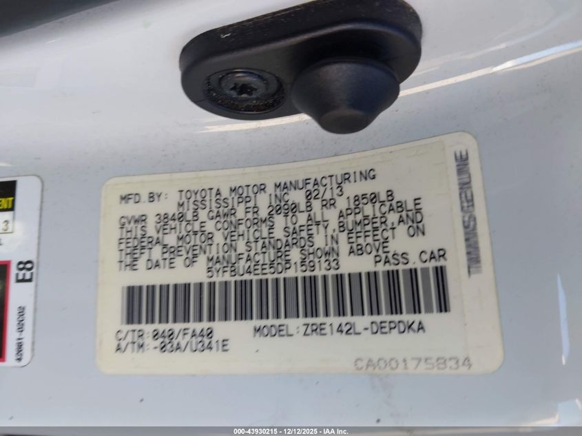 2013 TOYOTA COROLLA - 5YFBU4EE5DP159133, колір - Білий, 1.8, Бензин, Передній привід із США