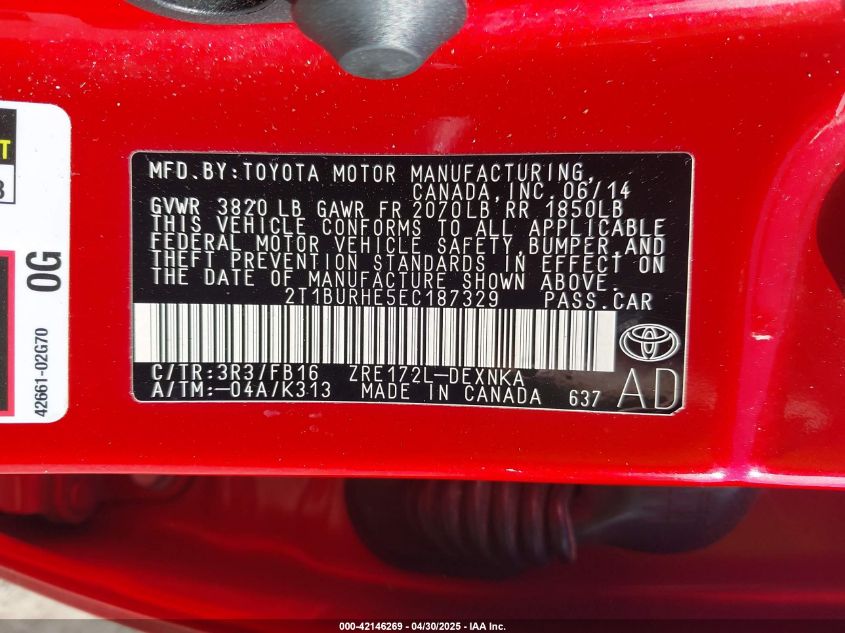 2014 TOYOTA COROLLA - 2T1BURHE5EC187329, колір - Червоний, 1.8, Бензин, Передній привід із США