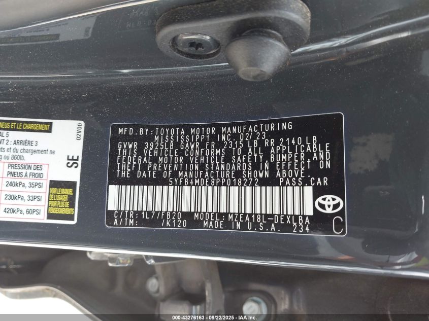 2023 TOYOTA COROLLA - 5YFB4MDE8PP018272, колір - Сірий, 2.0, Бензин, Передній привід із США