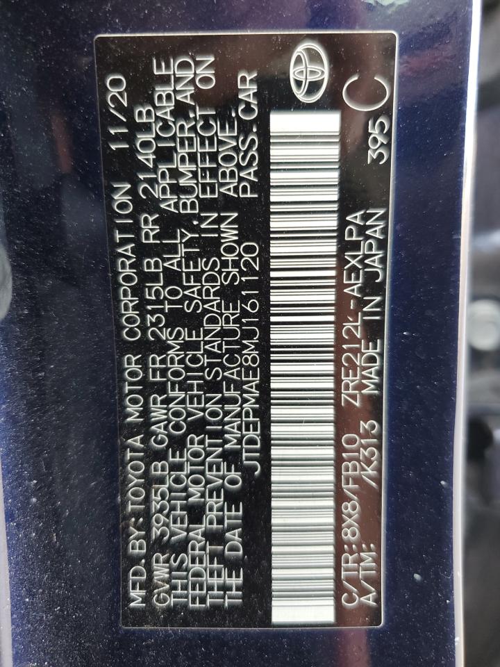 2021 TOYOTA COROLLA - JTDEPMAE8MJ161120, колір - Синій, 1.8, Бензин, із США