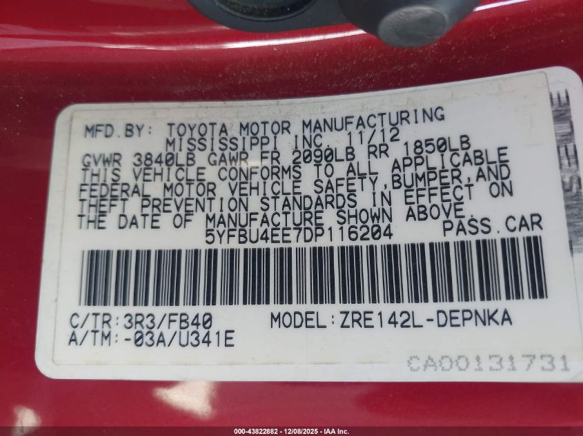 2013 TOYOTA COROLLA BASE