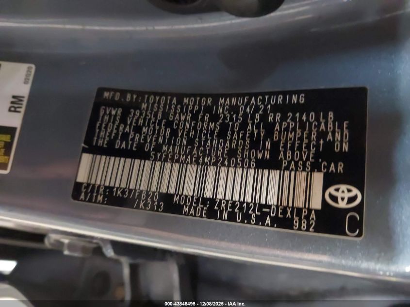 2021 TOYOTA COROLLA - 5YFEPMAE4MP240506, колір - Синій, 1.8, Бензин, Передній привід із США