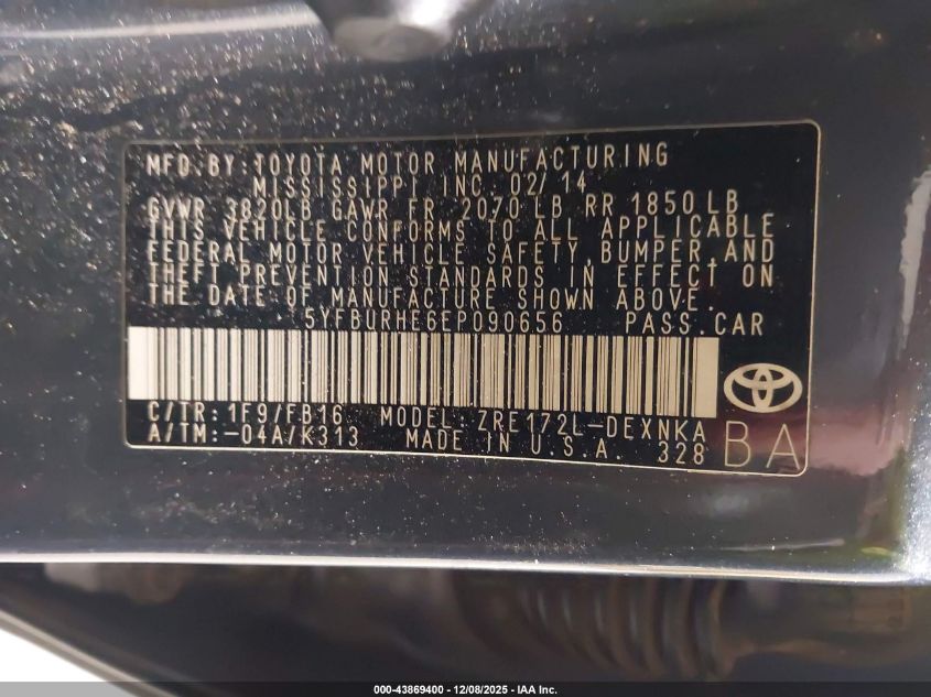 2014 TOYOTA COROLLA - 5YFBURHE6EP090656, колір - Сірий, 1.8, Бензин, Передній привід із США