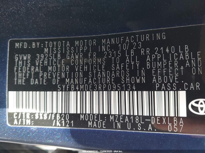 2024 TOYOTA COROLLA - 5YFB4MDE3RP095134, колір - Синій, 2.0, Бензин, Передній привід із США