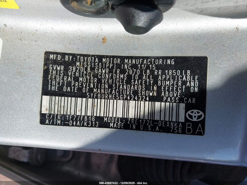 2016 TOYOTA COROLLA L
