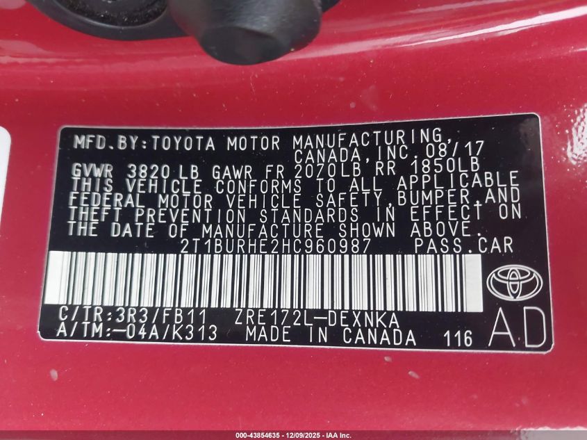 2017 TOYOTA COROLLA L