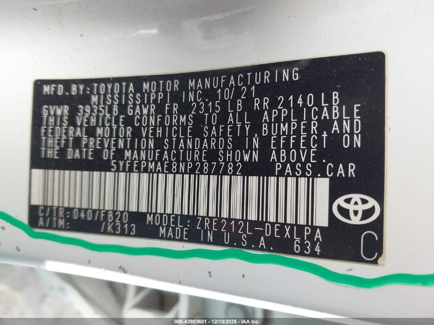 2022 TOYOTA COROLLA LE