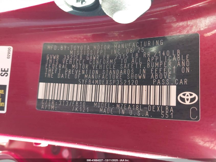 2025 TOYOTA COROLLA - 5YFB4MDEXSP352120, колір - Червоний, 2.0, Бензин, Передній привід із США