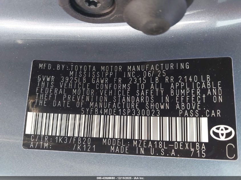 2025 TOYOTA COROLLA - 5YFB4MDE1SP330023, колір - Синій, 2.0, Бензин, Передній привід із США