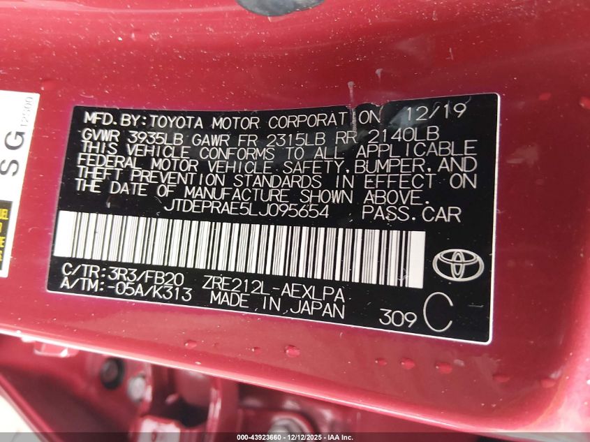 Колір ЧервонийЦиліндри 4Привід Передній привідVIN JTDEPRAE5LJ095654Стан ЗаводитьсяУшкодження Передня або задня