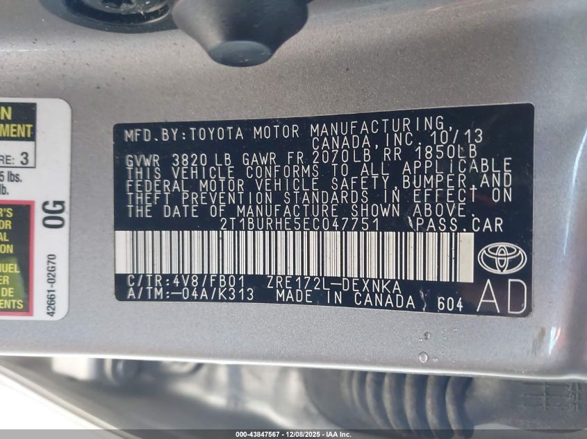 2014 TOYOTA COROLLA - 2T1BURHE5EC047751, колір - Сірий, 1.8, Бензин, Передній привід із США