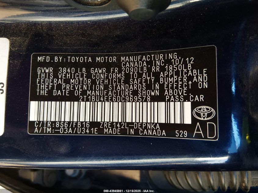 2013 TOYOTA COROLLA - 2T1BU4EE6DC969578, колір - Синій, 1.8, Бензин, Передній привід із США