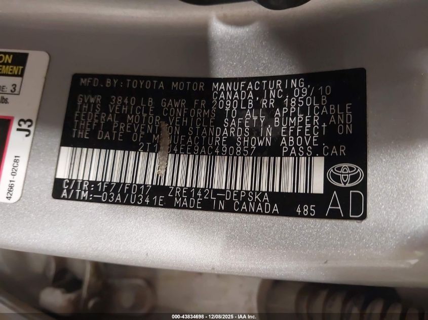 2010 TOYOTA COROLLA - 2T1BU4EE9AC490857, колір - Срібний, 1.8, Бензин, Передній привід із США