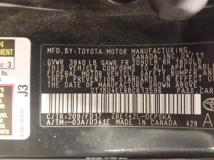 2011 TOYOTA COROLLA - 2T1BU4EE8BC613596, колір - Чорний, 1.8, Бензин, Передній привід із США