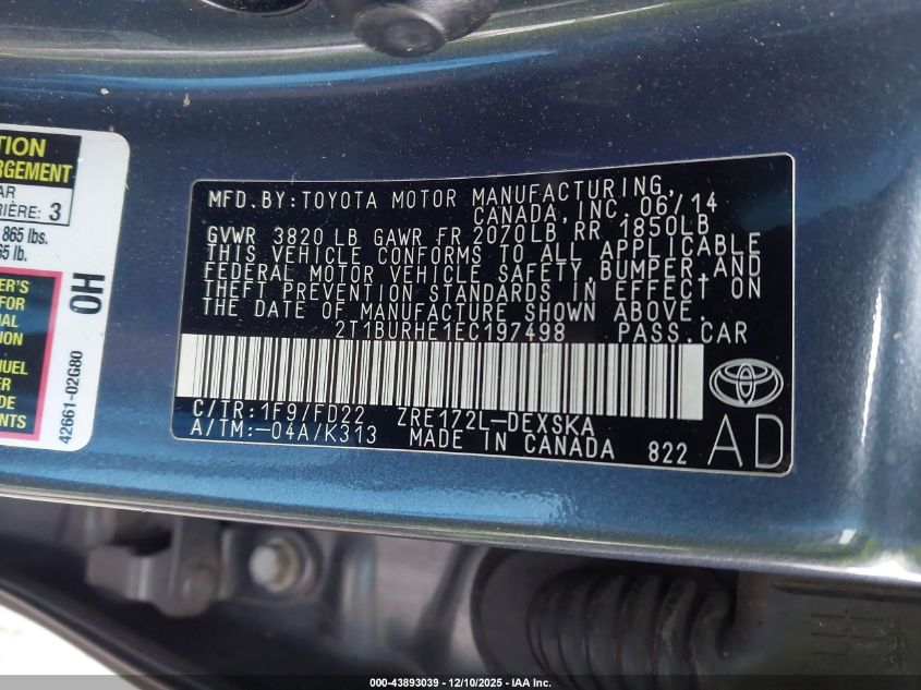 2014 TOYOTA COROLLA - 2T1BURHE1EC197498, колір - Сірий, 1.8, Бензин, Передній привід із США