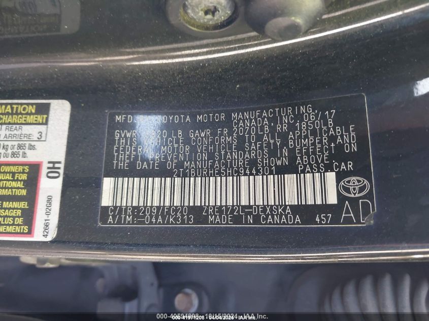 2017 TOYOTA COROLLA - 2T1BURHE5HC944301, колір - Чорний, 1.8, Бензин, Передній привід із США