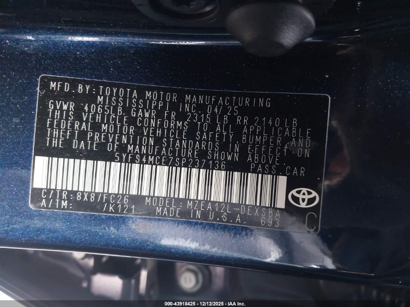 2025 TOYOTA COROLLA - 5YFS4MCE7SP237136, колір - Синій, 2.0, Бензин, Передній привід із США