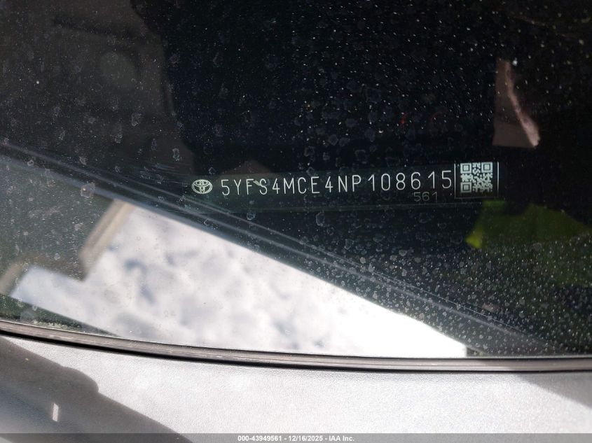 2022 TOYOTA COROLLA - 5YFS4MCE4NP108615, колір - , 2.0, Бензин, Передній привід із США