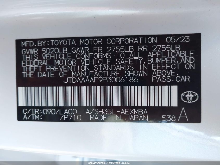 2023 TOYOTA CROWN - JTDAAAAF9P3006186, колір - , 2.5, Гібрид, Повний привід із США