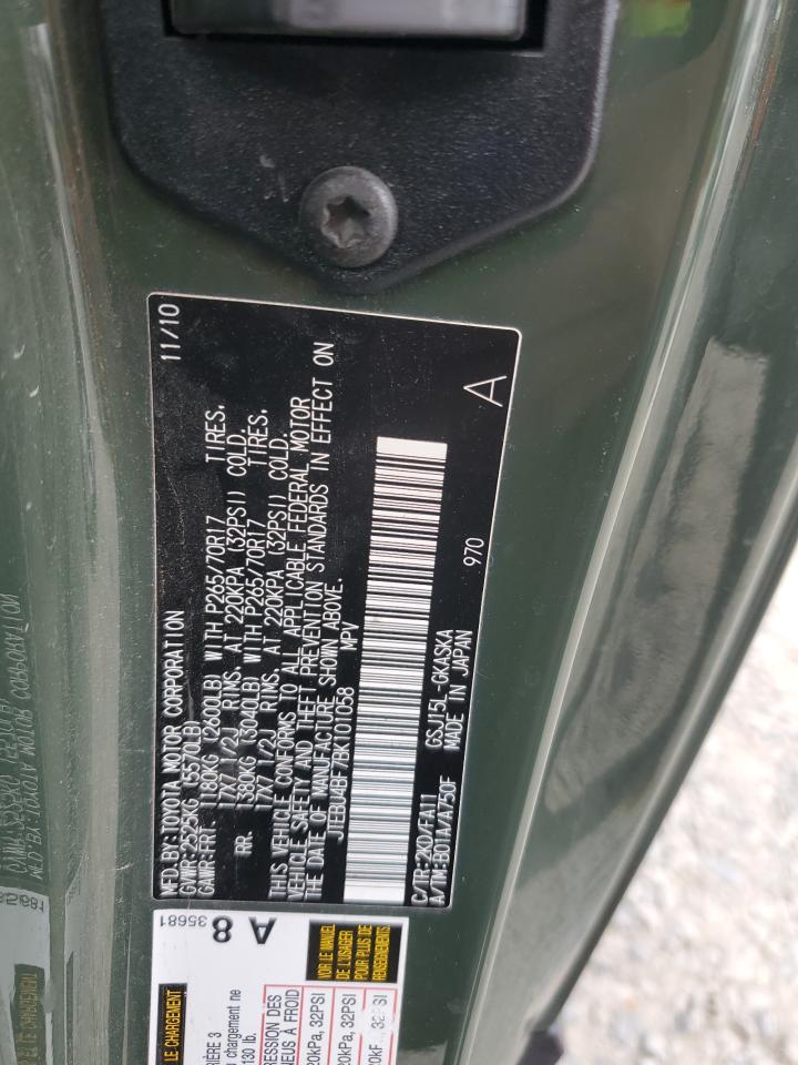2011 TOYOTA FJ CRUISER - JTEBU4BF7BK101058, колір - Зелений, 4.0, Бензин, 4x4 з заднім приводом із США