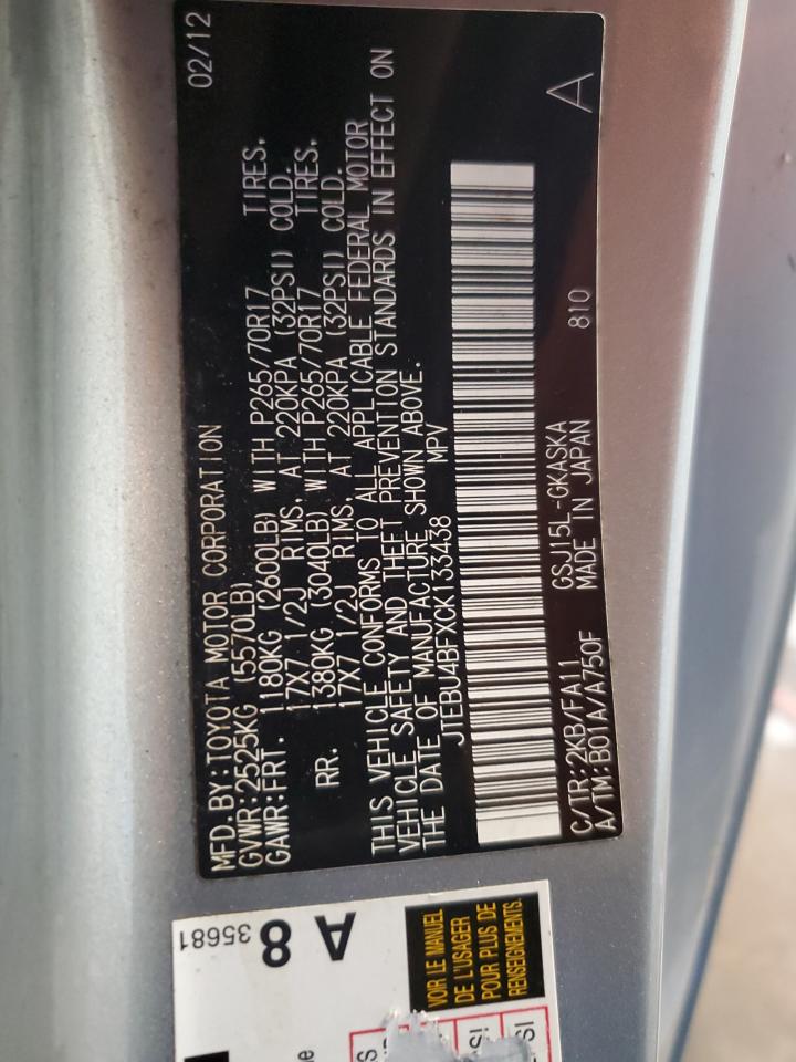 2012 TOYOTA FJ CRUISER - JTEBU4BFXCK133438, колір - Срібний, 4.0, Бензин, 4x4 з заднім приводом із США
