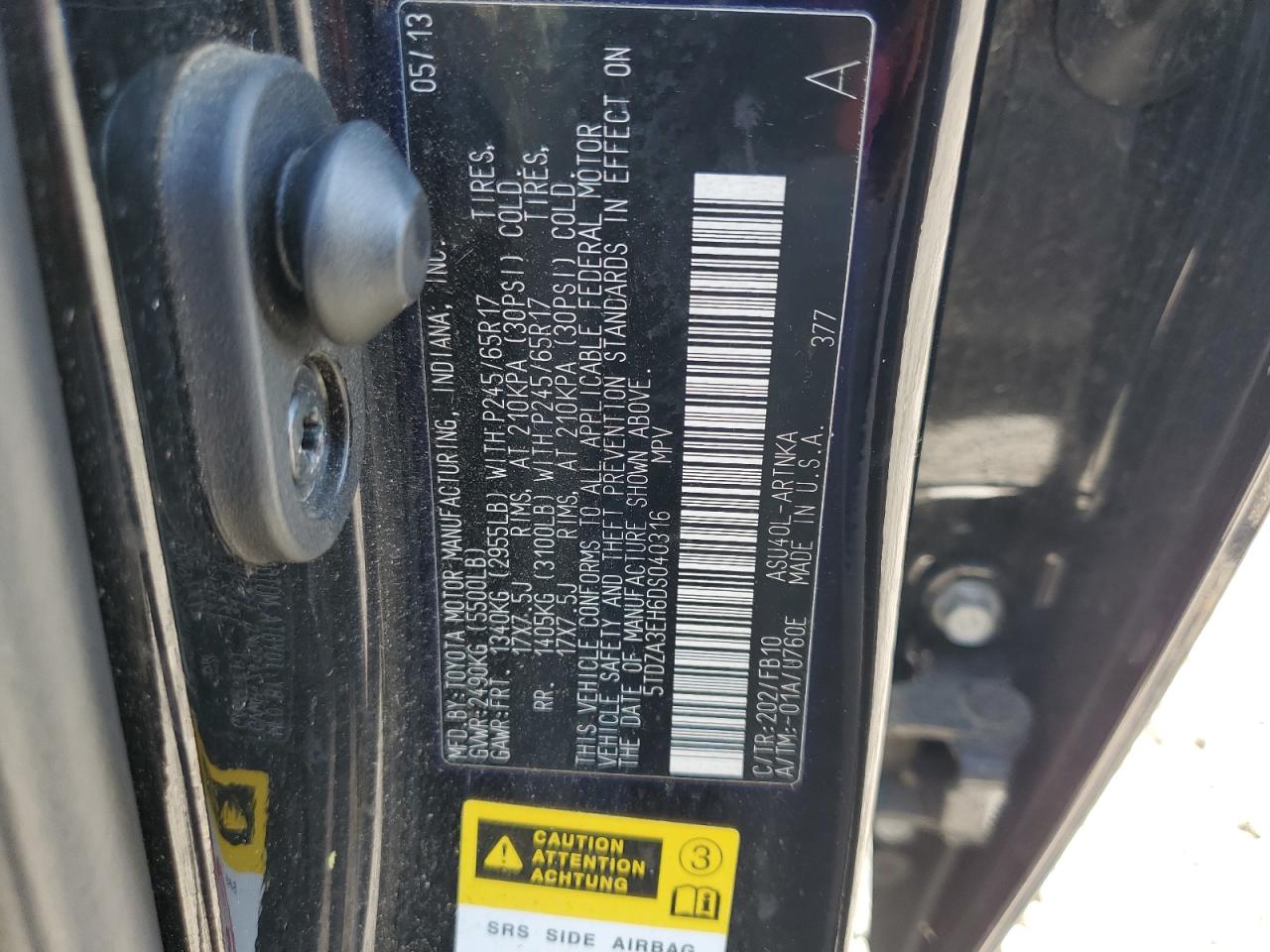 Колір ЧорнийЦиліндри 4VIN 5TDZA3EH6DS040316Стан НевідомоУшкодження НезначніДата аукціона 2025-10-07