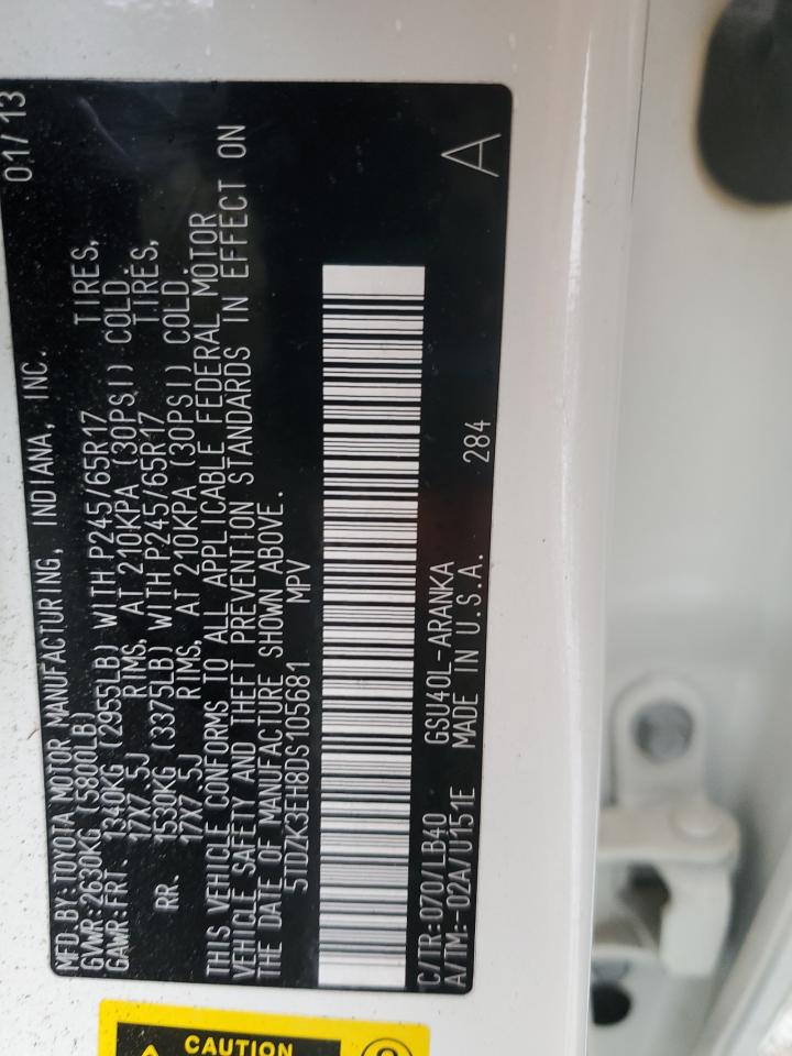 2013 TOYOTA HIGHLANDER - 5TDZK3EH8DS105681, колір - Білий, 3.5, Бензин, із США