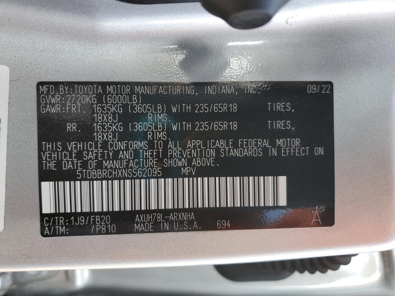 2022 TOYOTA HIGHLANDER - 5TDBBRCHXNS562095, колір - Срібний, 2.5, Гібрид, Повний привід із США